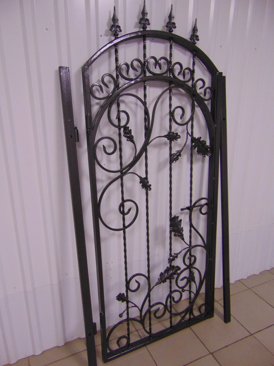 Вхідна хвіртка, кована, металева пофарбована порошковою фарбою буде гарно виглядати довгі роки. Полімерне (порошкове) пофарбування кованих металевих виробів міцніше від звичайного, стійке до подряпин та надзвичайно витривале до вигорання під сонцем (ультрафіолетом). Якість Гарантовано!